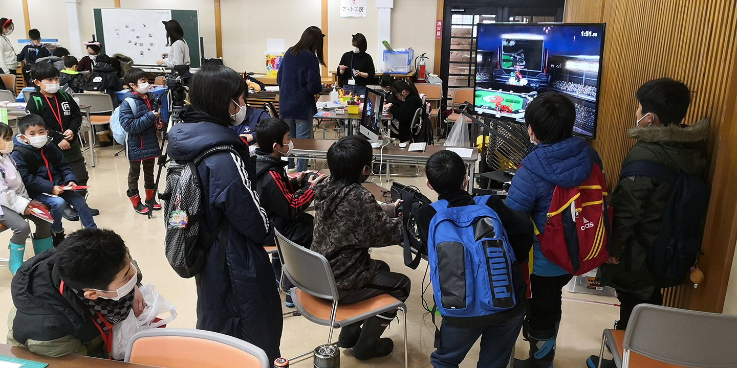 「しごとーいうご冬休みスペシャル2021」(主催:NPO法人みらいの学校)ボランティアスタッフとして参加しました。デジナーレ情報学研究所ではeスポーツの体験ブース「eスポーツ道場」を設置し、子どもたちのブース運営をサポートさせていただきました。