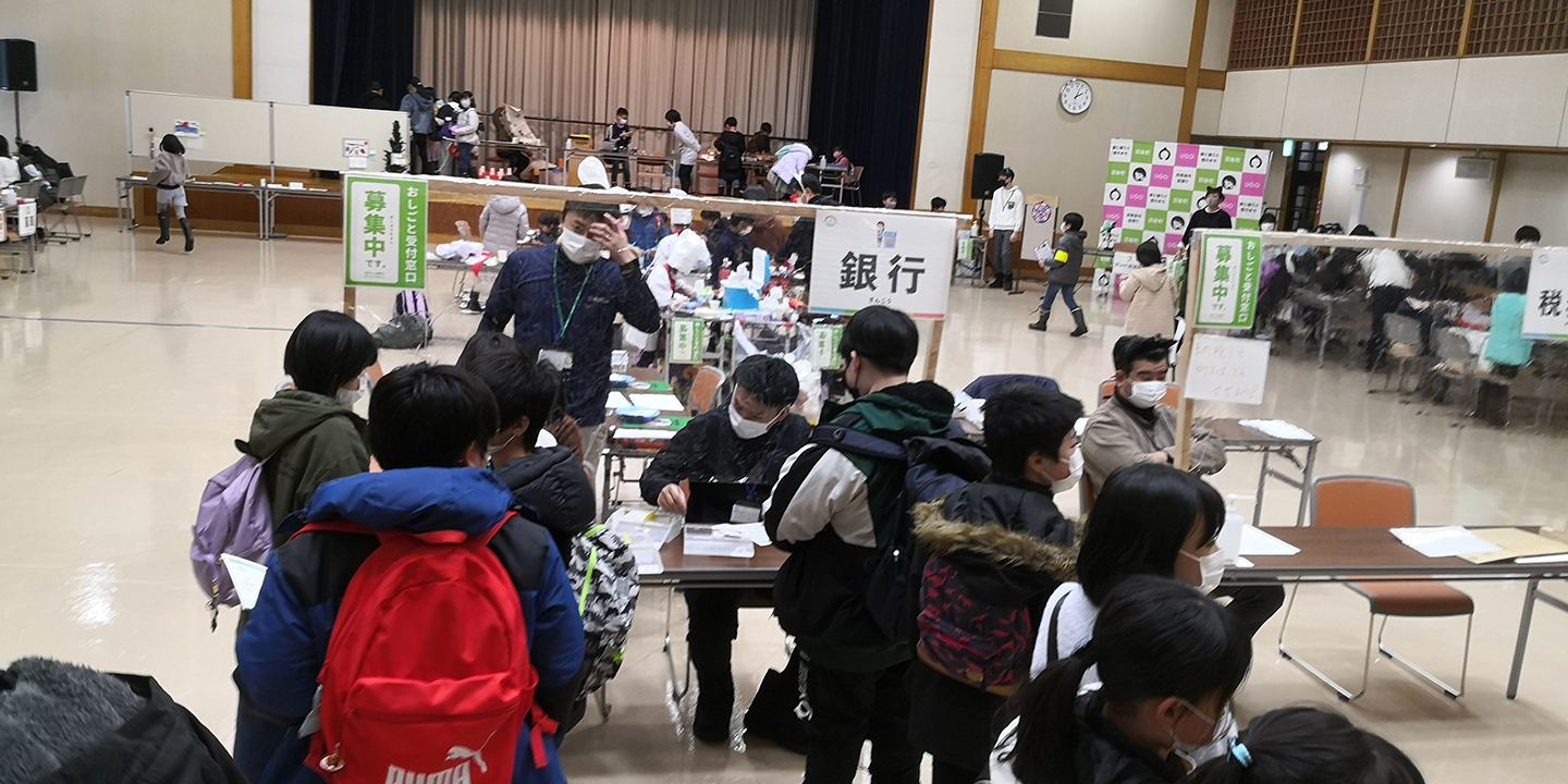 「しごとーい」とは、子ども向けのおしごと体験イベント。子どもたちは 職業ブースから好きなおしごとを選んでお手伝い。お給料の仮想通貨を使用すると、他のブースでお買い物を楽しんだり遊んだりすることができます。さらに、納税すると会場に新たなブースが設置されるなど、税金によってまちが発展していく仕組みになっています。職業体験を通じて子どもたちが社会や経済の仕組みについて学ぶことができるイベントです。